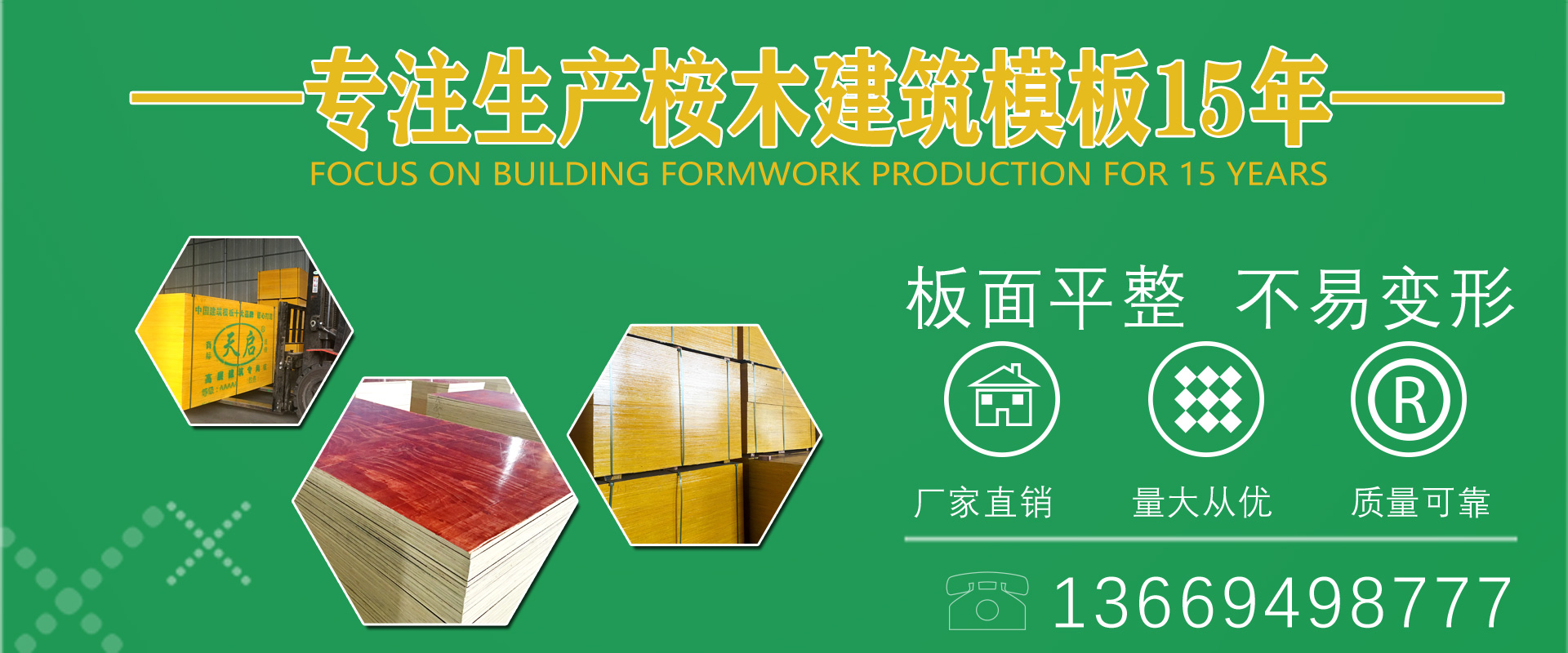 天啟木業(yè)主營:建筑木模板、膠合板、覆膜板、清水建筑模板、橋梁建筑模板、優(yōu)質(zhì)高端建筑模板。產(chǎn)品質(zhì)量倍受認可,贏得了眾多客戶的一致好評。天啟人愿廣交天下朋友,精誠合作,互惠互利,共創(chuàng)美好未來。咨詢電話:13669498777